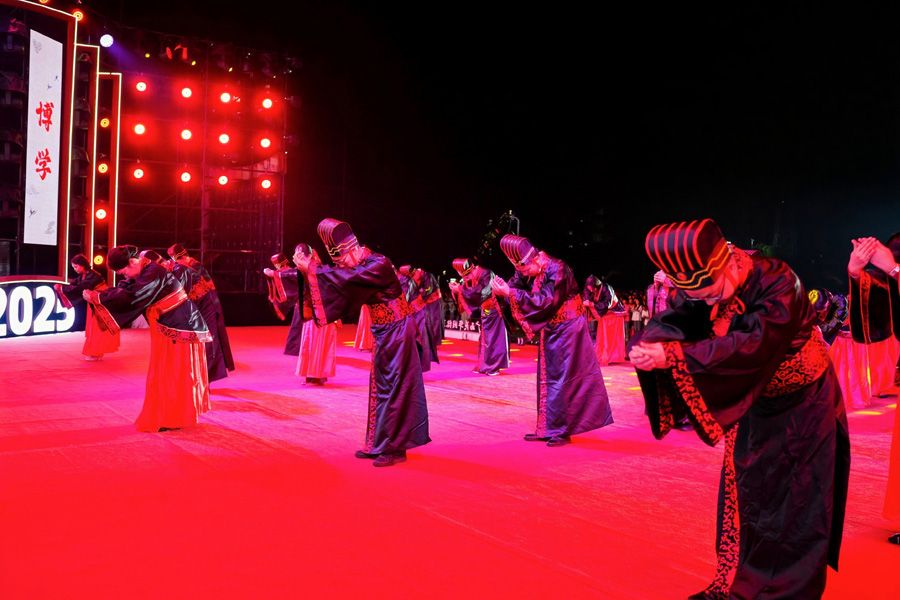 “善之本在教,教之本在师。”一拜自强不息,二拜厚德载物,三拜精忠报国,四拜孝亲尊师,五拜至亲父母——每一个动作都满含对中华传统师道的传承,让在场学子的心灵深深受触。