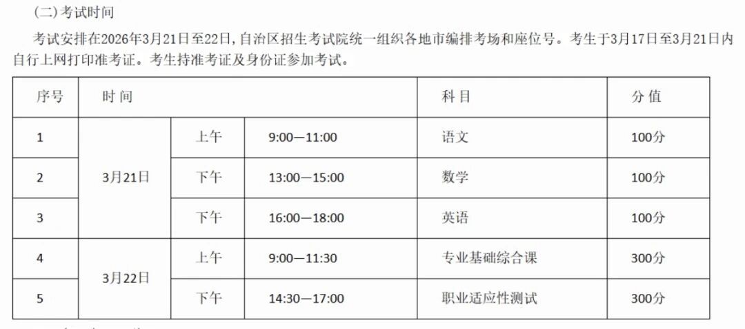 2026 广西职教高考统一准考证打印&考试时间